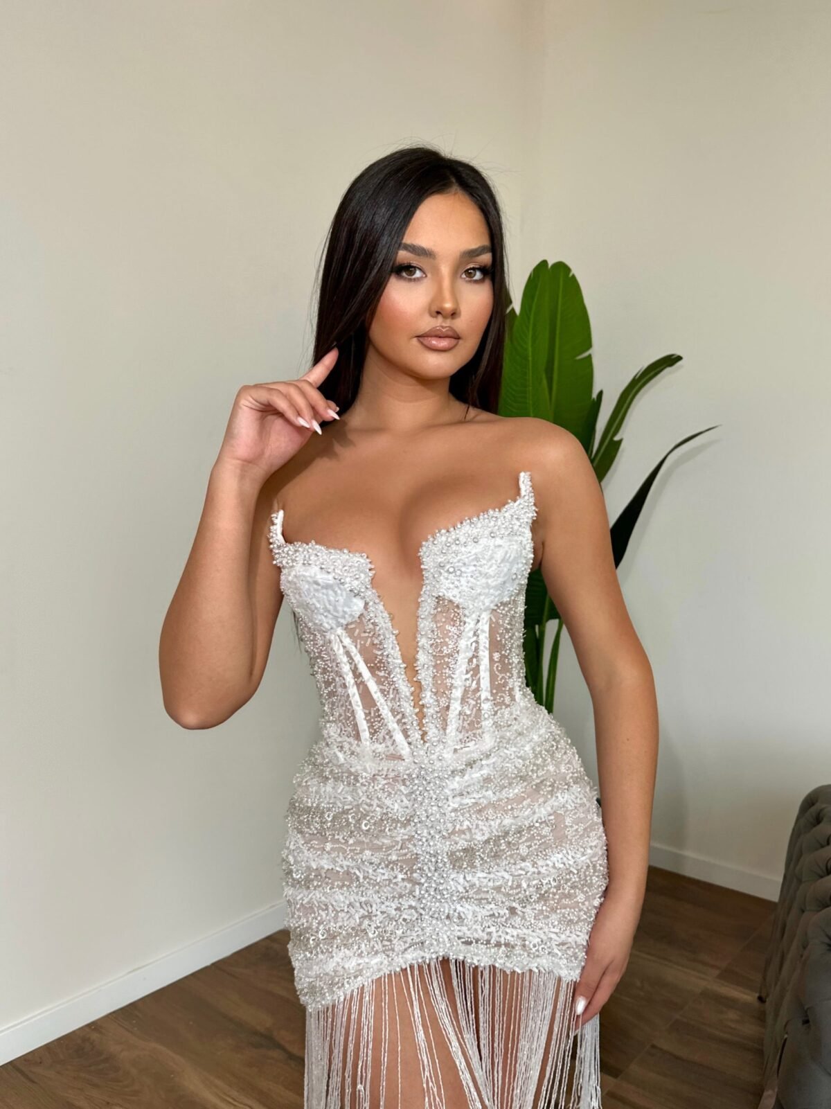 Designed for the woman who’s scripting her own fairytale. This curated assortment features the crème de la crème of short white dresses, each one a crowd-pleaser that has captured hearts aplenty. Whether it’s for your engagement party, bridal shower, or rehearsal dinner, these dresses embody the bliss and excitement that precedes the ‘I do’s. Say yes to the dress that mirrors the magic of the journey ahead!