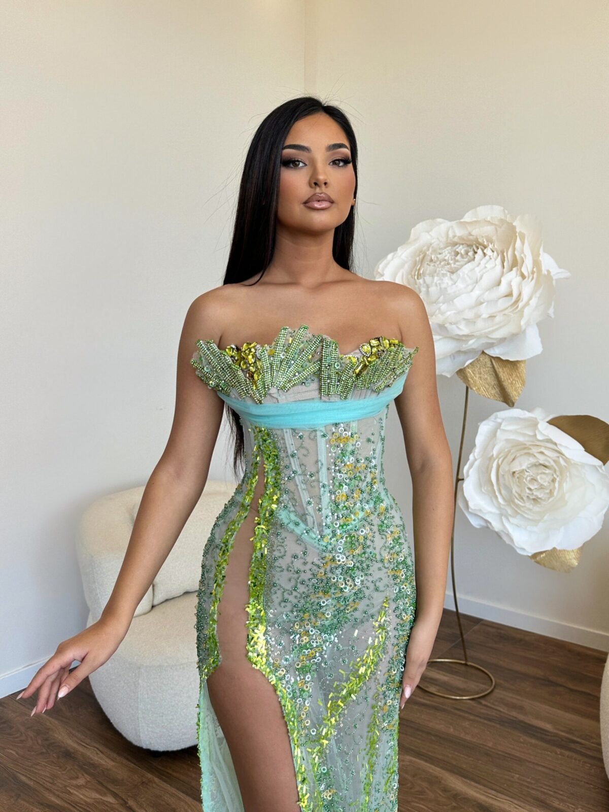 – Our green prom dresses are made from high-quality materials such as silk, satin, lace, and chiffon, offering a luxurious feel and comfortable fit.