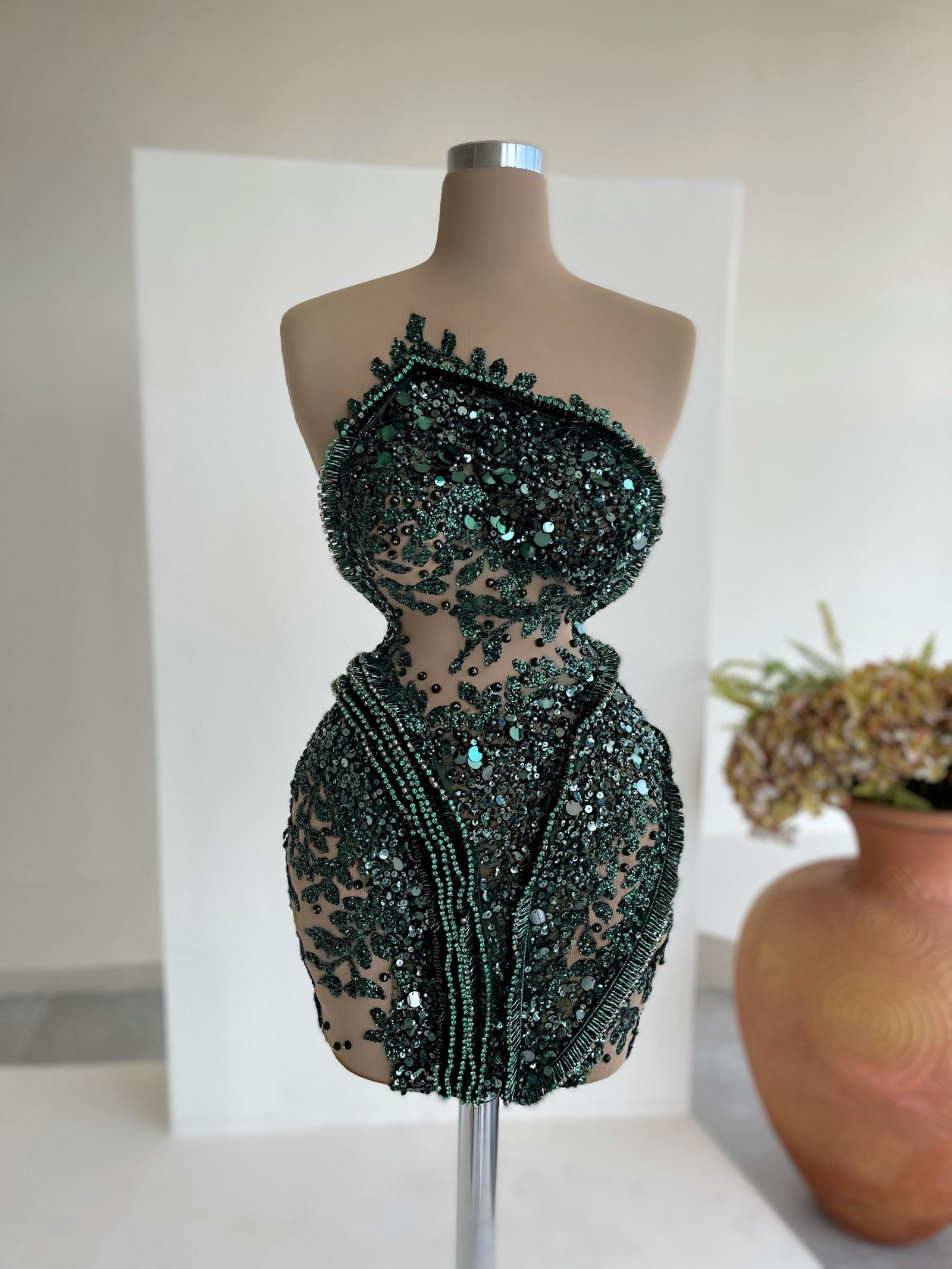 A party dress that’s elegant and not too revealing? Yeah it’s not easy because the dress also needs to match your personality too, so if you’re still in doubt about that perfect dress one of the party dresses we’re suggesting is this strapless green dress. A strapless green dress? Yes a strapless green dress because what kind of dress shows that feminine and delicate figure better than a strapless dress. If you have something better on your mind, we’d be grateful if you tell us. If you want something unique, you have to opt for a kind of dress that you usually don’t go for. For example, if you weren’t into glamourous dresses, you can experiment with a dress that fits your personality, like this green dress with sequin that features unique sequins in a line form, so when you wear this green dress with sequin, you will look very unique from others, we guarantee that.
