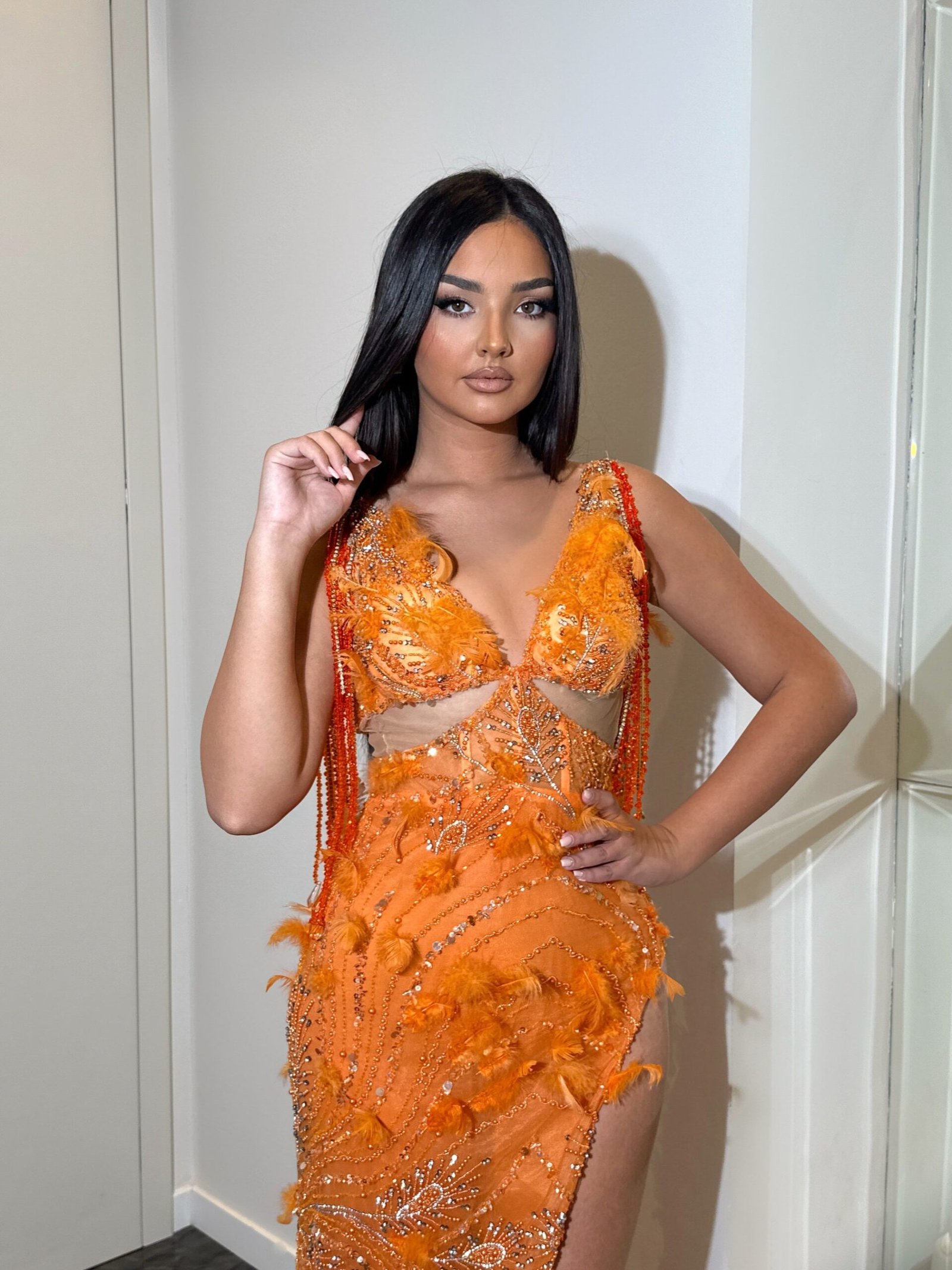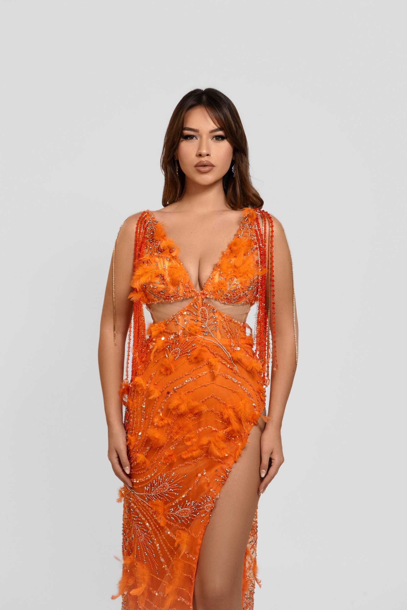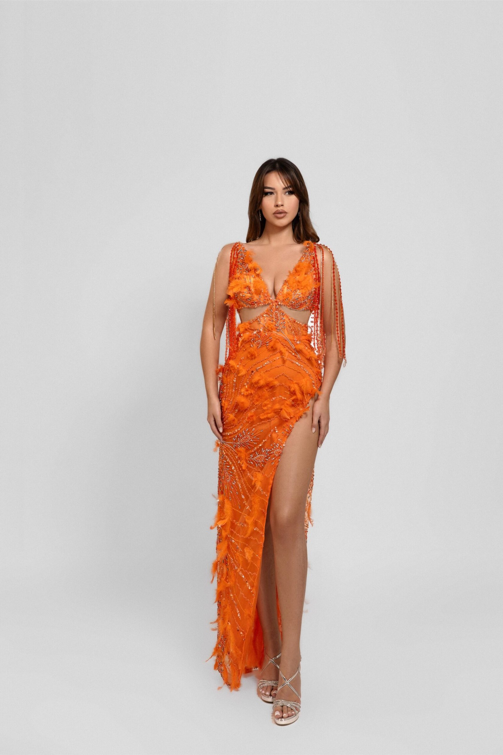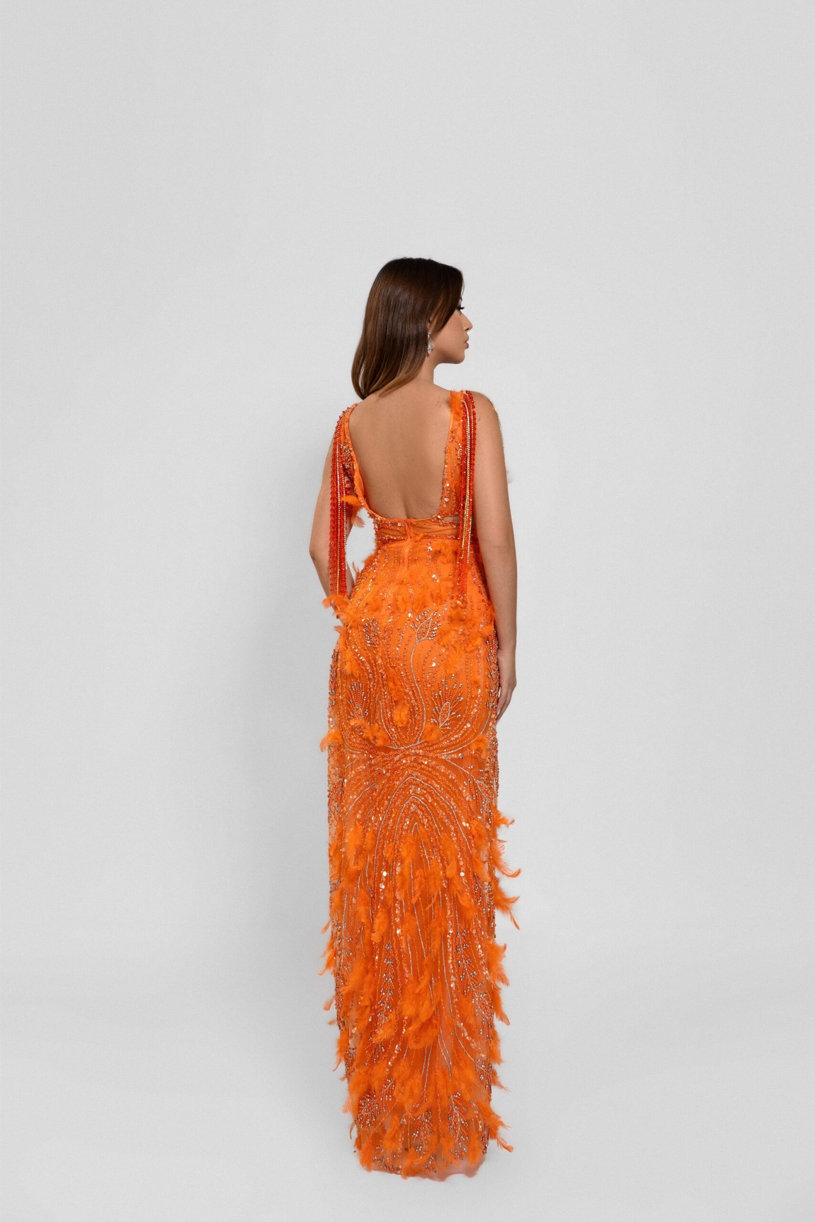 Be the first to review “Dakota Long Dress with Feathers and Straps”