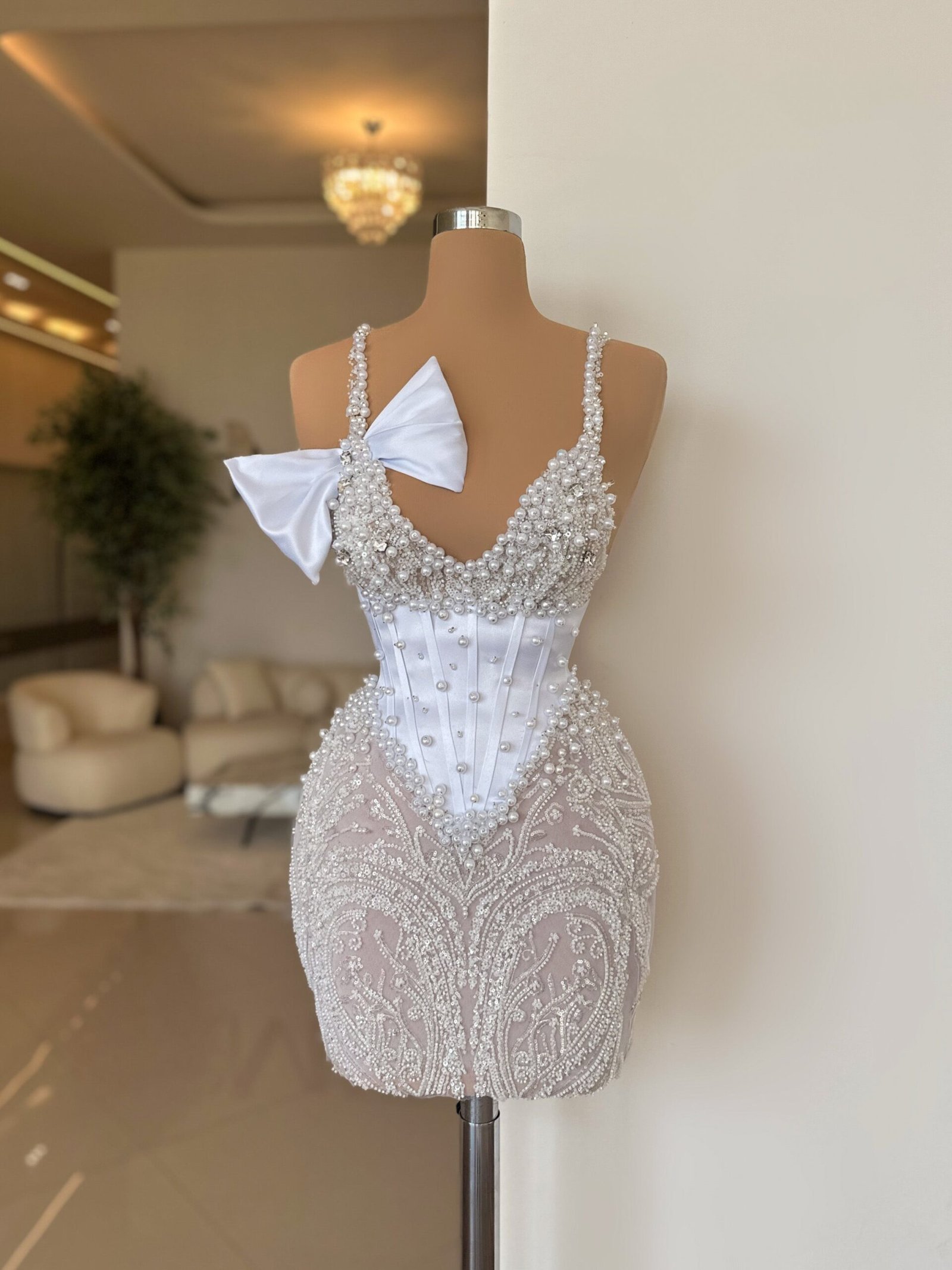 Adorned with exquisite beads and stones, the dress glistens with every movement, casting a radiant shimmer that captures the light and adds a touch of ethereal magic to your ensemble.