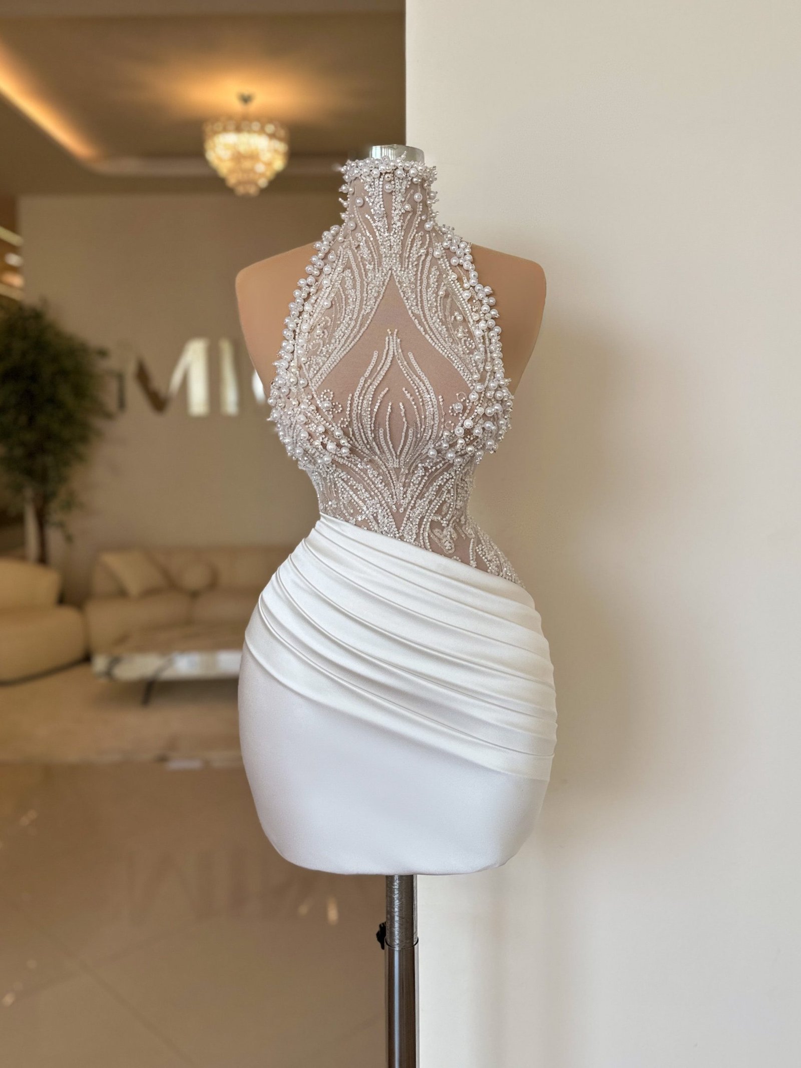 This short dress is perfect for the bride-to-be’s celebration. With a hint of sparkle and a flattering silhouette, it exudes youthful elegance, making it ideal for her special pre-wedding festivities. Whether paired with heels or sparkling flats, it promises an unforgettable night of joy and style.